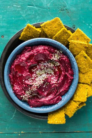 - Sốt Hummus từ bã ép củ dền – Trang "Edible Experiments" (Phần bã ép củ dền hoặc các loại rau củ khác)