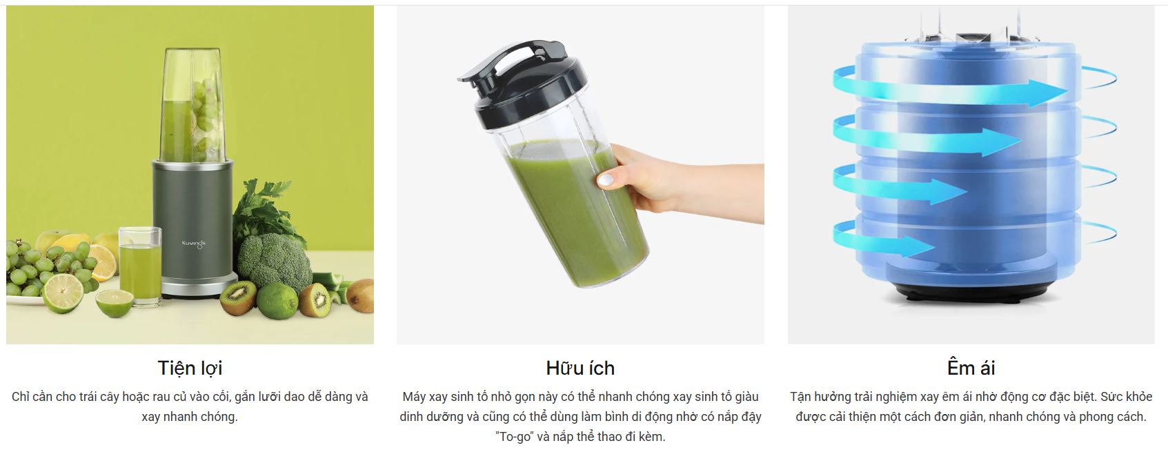 Máy xay sinh tố cá nhân chuyên nghiệp Kuvings là một chiếc máy xay được thiết kế tối ưu hóa để làm các loại nước ép, sinh tố lành mạnh trở nên thuận tiện hơn trong cuộc sống hằng ngày.