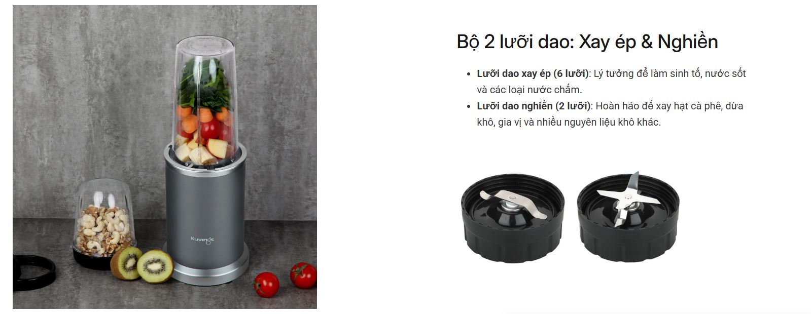 Máy xay sinh tố cá nhân chuyên nghiệp Kuvings mang đến hỗn hợp xay mịn hoàn hảo trong mỗi lần sử dụng.
